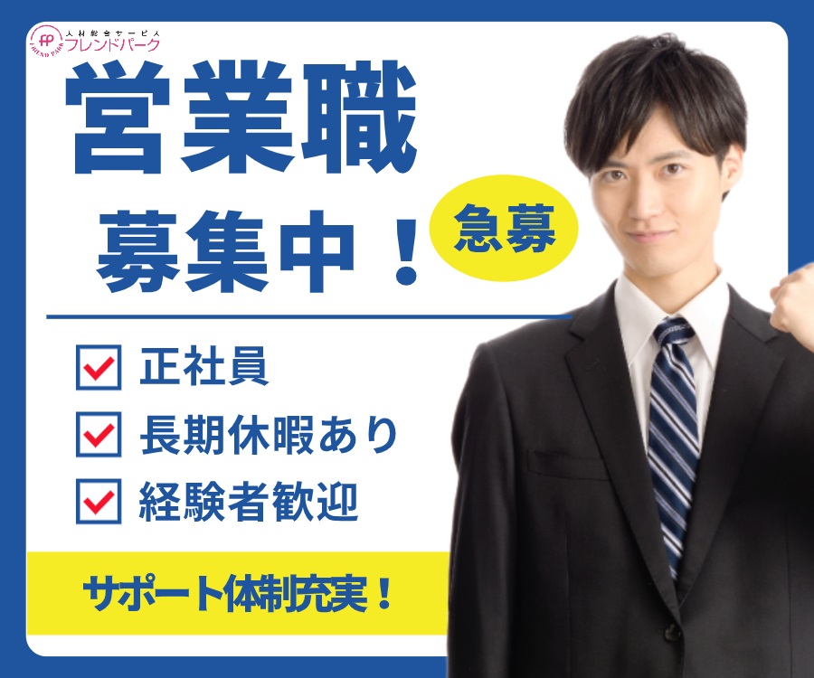 不動産業界での営業のお仕事になります! 長期で安定に働きたい方必見です! 営業職の経験がある方、スキルアップしたい方、ご興味をお持ちの方はご相談からでも構いませんのでご応募ください♪
